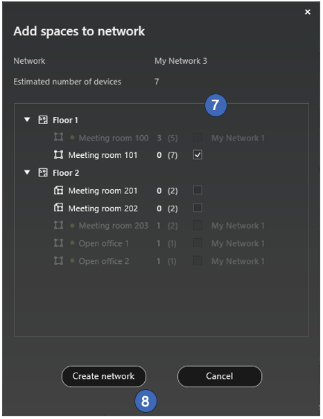 It is not mandatory to select spaces to the network at this phase, it can also be done later from each space’s properties.